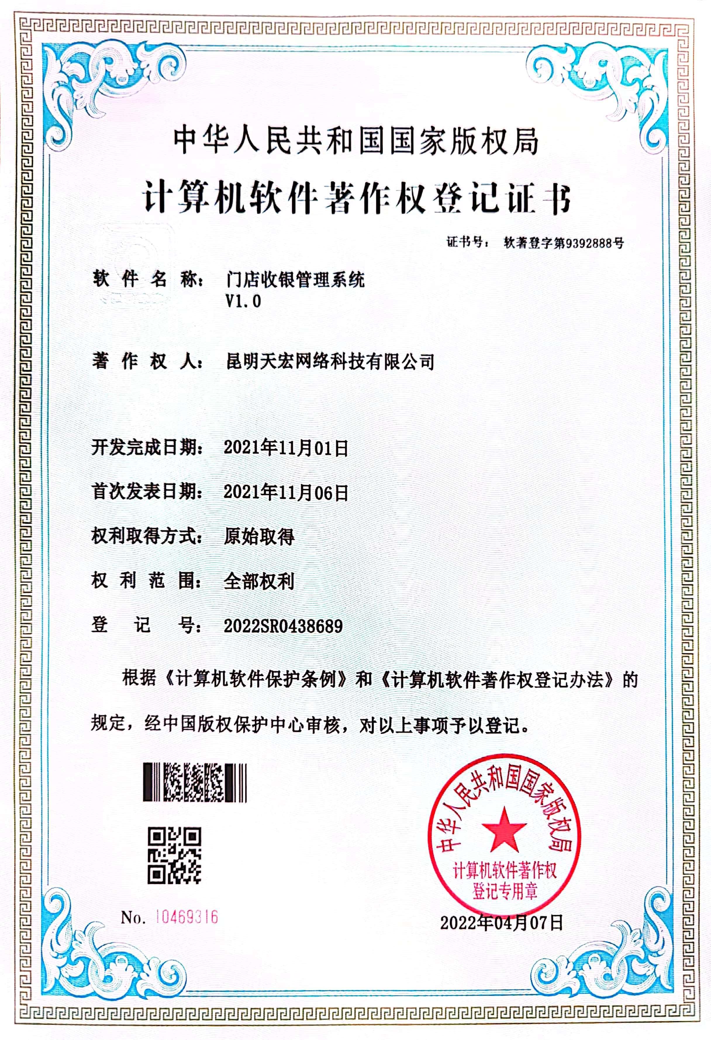 天宏網絡通過不斷的研發(fā)創(chuàng)新,現擁有50多項計算機軟著證書,包括多商家點餐系統、門店收銀管理系統、通用OA協同辦公管理系統、智慧商圈運營管理平臺、天宏健康智慧+系統、同城O2O管理系統等。
